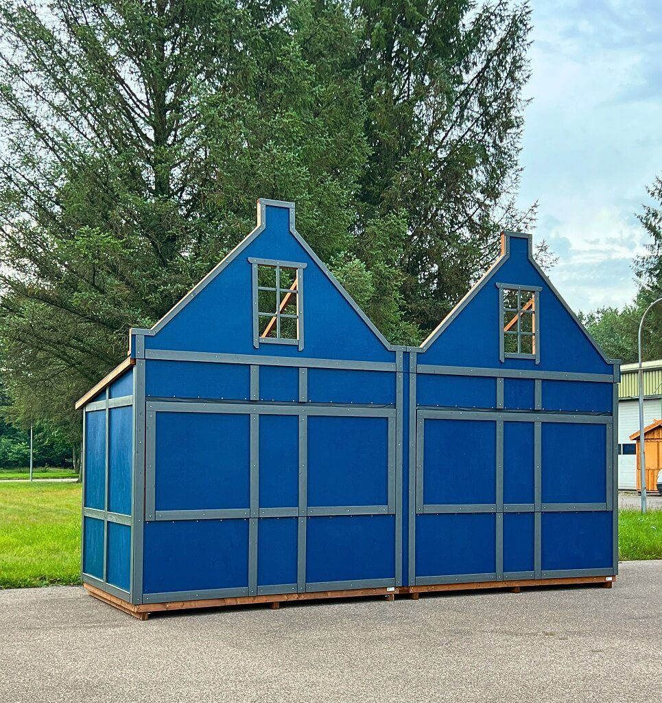 Auch unsere außergewöhnlichen Altstadtgiebelhütten sind Pultdachhütten. Bei diesem spannenden Hüttentyp bieten wir attraktive Giebel in unterschiedlichen Varianten an. Diese erinnern an die Fronten mancher Altstädte und die Zeit der Hanse.